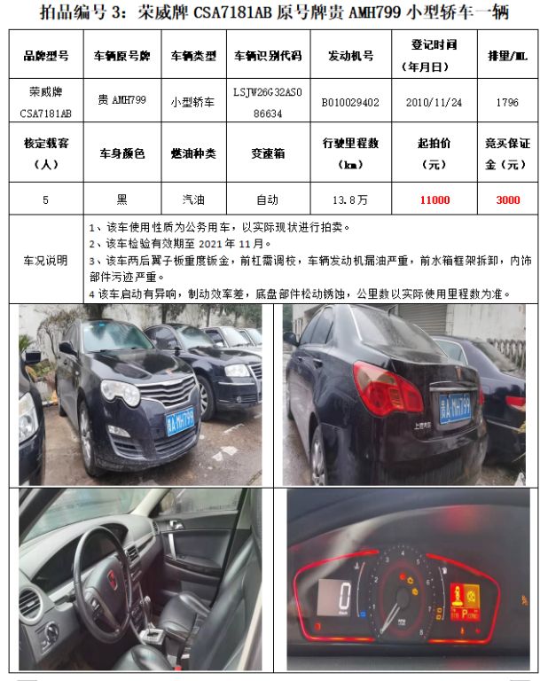 受委托,我公司于2021年12月27日(星期一)下午14:30在貴州省貴陽市中華南路20號新大陸數碼廣場10樓D座會議室公開拍賣以下標的: