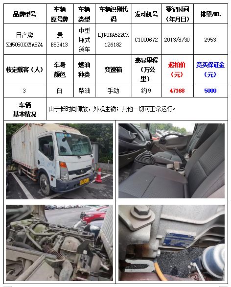 拍品編號5:日產牌ZN5050XXYA5Z4中型廂式貨車一輛