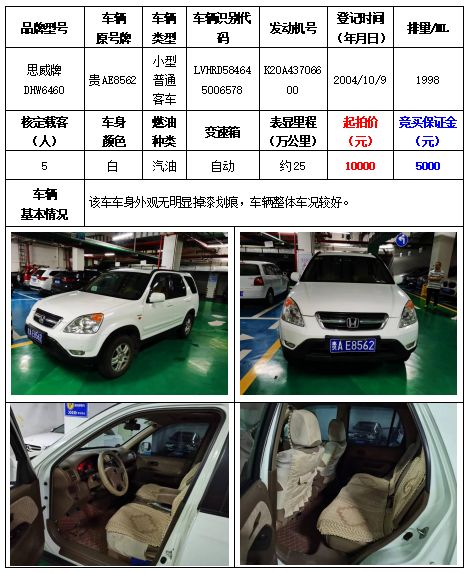 拍品編號4:思威牌DHW6460小型普通客車一輛