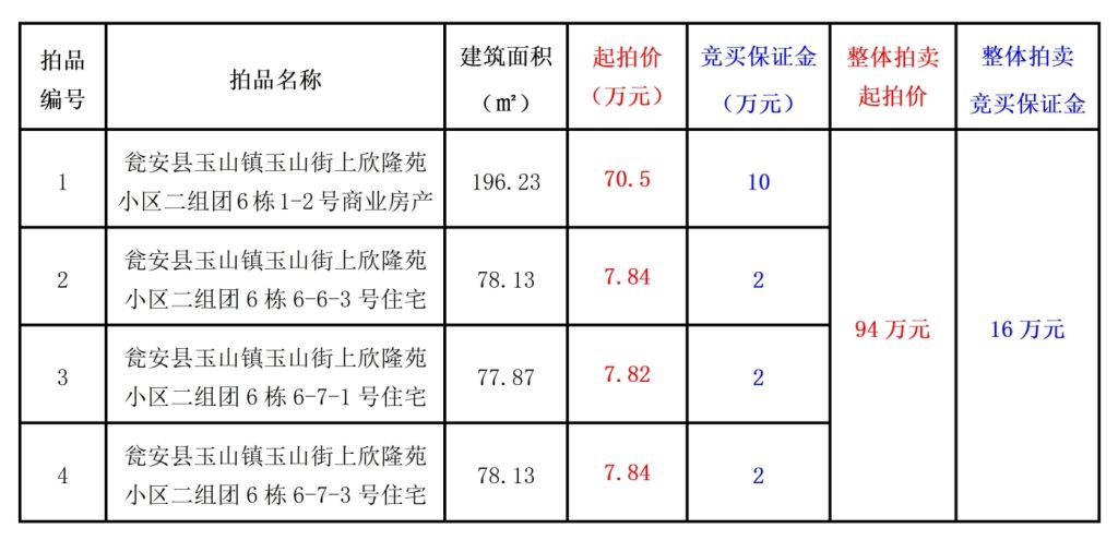 拍品編號(hào)1-4:甕安縣玉山鎮(zhèn)玉山街上欣隆苑小區(qū)二組團(tuán)6棟商業(yè)用房及住房