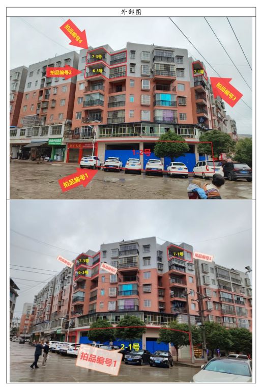 1、標(biāo)的坐落于甕安縣玉山鎮(zhèn)玉山街上欣隆苑小區(qū)二組團(tuán)6棟,標(biāo)的所在樓棟總層數(shù)為7層,拍品編號(hào)1位于第1層,層高為3.3米,兩面均臨街;拍品編號(hào)2位于第6層,拍品編號(hào)3和4位于第7層,層高均為2.8米,戶型皆為2室1廳1廚1衛(wèi),混合結(jié)構(gòu);照明、通訊、水電等配套設(shè)施齊全。周邊有玉山小學(xué)、郵政銀行、好樂(lè)購(gòu)購(gòu)物廣場(chǎng)、玉山農(nóng)貿(mào)市場(chǎng)等生活配套設(shè)施。