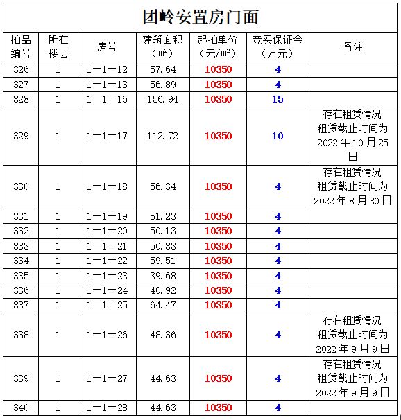 3、團嶺安置房門面36間,建筑面積:39.68㎡-1123.98㎡,起拍單價:3690—10350元/㎡;