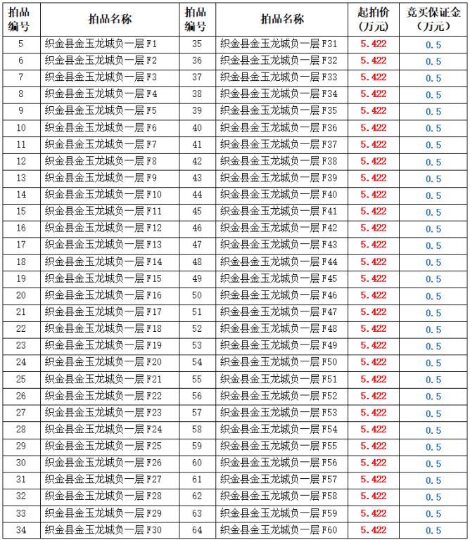 【已結束】織金縣金玉龍城商貿城負一層車位拍賣