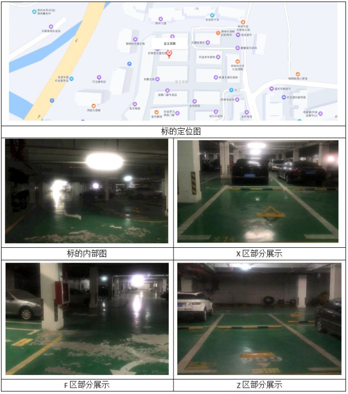 該批標的位于織金縣金玉龍城負一層,共有車位272個,停車位地面刷地面漆、墻面刷瓷粉及乳膠席、車位線、部分安裝車輪擋輪器。