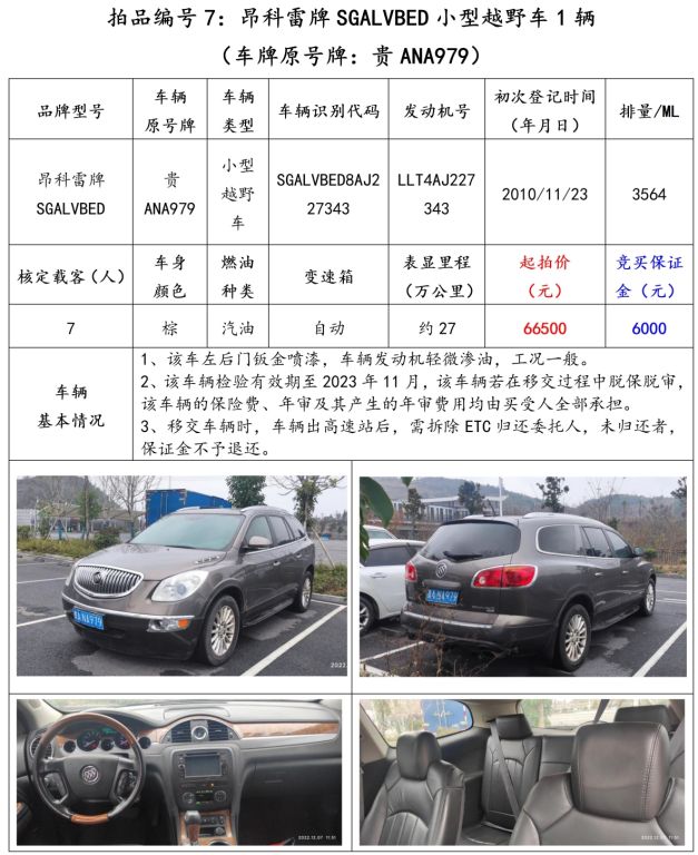 拍品編號7:昂科雷牌SGALVBED小型越野車1輛(車牌原號牌:貴ANA979);