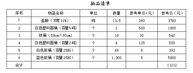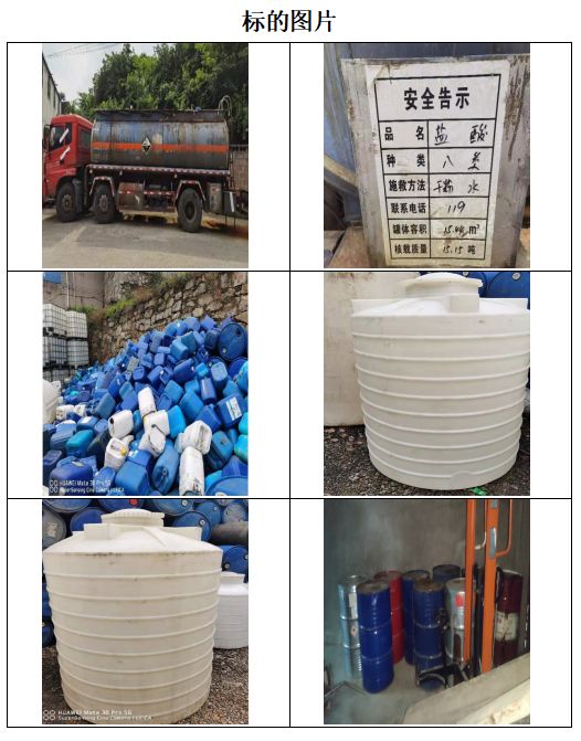 2、拍賣成交后買受人需要到標的物所在地提取標的物,買受人在提取和運輸鹽酸時,須按照國家法律、法規(guī)、行政規(guī)章制度的相關(guān)標準進行提貨和運輸。提取和運輸所有費用由買受人自行承擔。