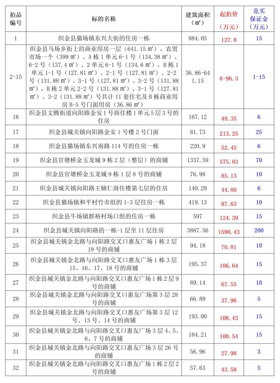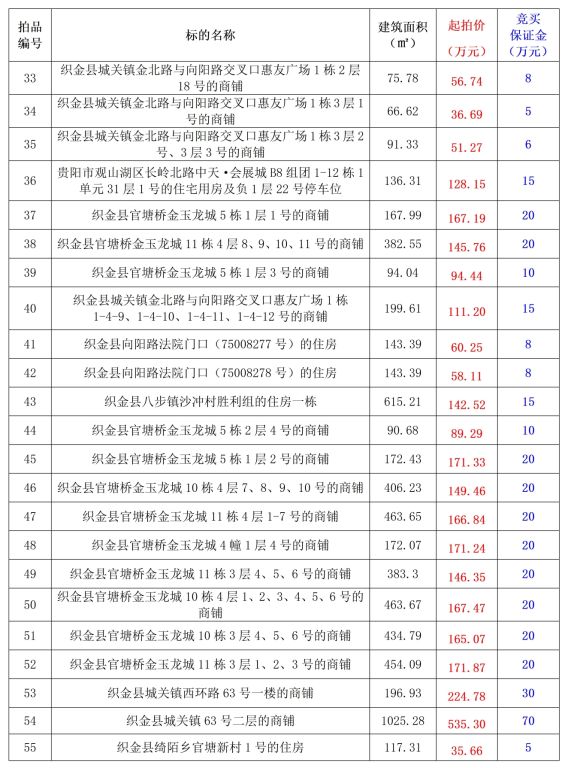 受委托,我公司定于2022年12月26日(星期一)14:30時,在織金縣金中路57號(織金農商銀行二樓會議室)公開拍賣以下標的:織金縣房地產55處。(詳見標的清單)