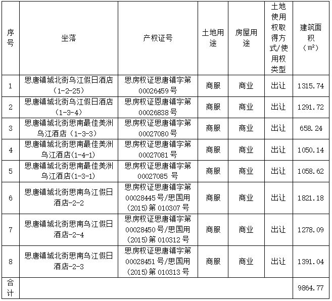 拍賣編號(hào)2:思唐鎮(zhèn)城北街思南最佳美洲烏江酒店商業(yè)用房,建筑面積:9421.94㎡;