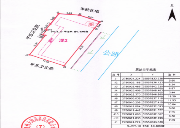 證載土地使用權面積:273.1㎡ 實測土地使用權面積:273.1㎡