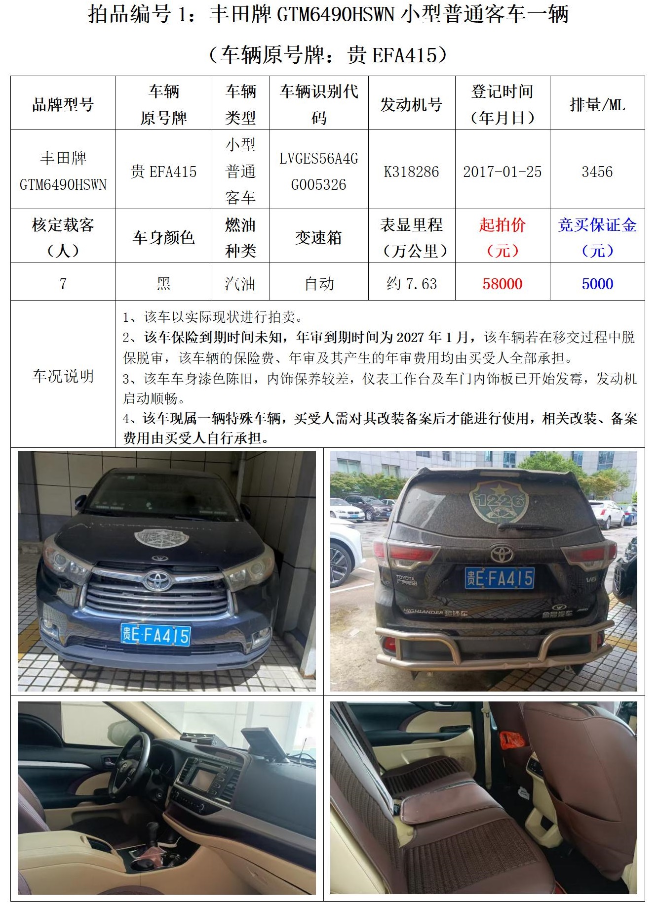 1、豐田牌GTM6490HSWN小型普通客車1輛;