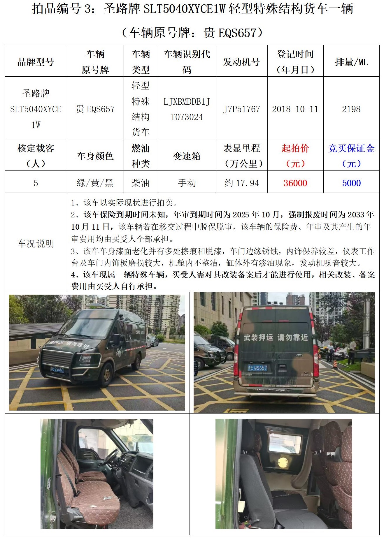 3、圣路牌SLT5040XYCE1W輕型特殊結構貨車1輛;