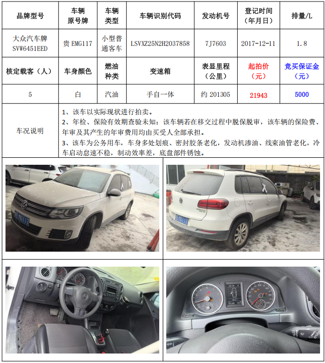 拍品編號7:大眾汽車牌SVW6451JED小型普通客車1輛(車輛原號牌:貴E90689)